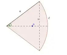 - Si l'on note la corde et ℓ l'arc du secteur angulaire, le centre de masse est à une distance du centre égale à
