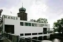 À cet endroit, entre 1928 et 1930, le cercle artistique Mánes fait construire un complexe fonctionnaliste avec restaurant, club, salle d’exposition et bureaux de l’association, le tout sur les plans d’Otakar Novotný.