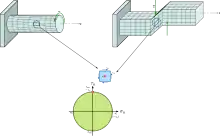 - de tout point d'une pièce rectiligne en flexion pure (partie centrale d'une flexion 4 points) ; on appelle x l'axe de la pièce ;