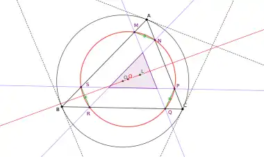 Cette propriété peut être prise comme définition en déterminant trois segments [MN], [PQ], [RS] de longueur égale et parallèles aux tangentes en A, B, C au cercle circonscrit.