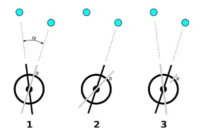 Soit à mesurer un angle α entre deux points visés[2].