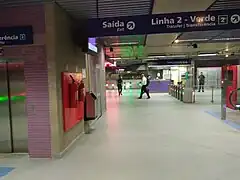 - "Totem Florafauna" (panneau), Marcos Lopes, peinture automobile sur tôles aluminium (2009), émail semi-brillant et tôles aluminium (6,80 mx 3,00 m), installé à l'accès au quai de la ligne 2 - Verte[4].