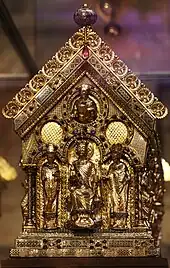 La châsse de Charlemagne, placée dans le chœur gothique de la cathédrale d'Aix-la-Chapelle, a été créée après 1182 dans un atelier d'orfèvrerie aixois et a été achevée pour le couronnement de l'empereur Frédéric II en l'an 1215.