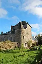 Le donjon médiéval construit en pierre calcaire et moellons de grès est haut de cinq niveaux et est constitué de murs d'une épaisseur d'1,20 m. L'angle nord-ouest fut reconstruit sur les deux tiers de sa hauteur et plusieurs baies sont percées au cours des siècles. Le donjon est couvert par une toiture débordante à quatre pans en ardoises. Ce donjon est encore aujourd'hui l'élément central et le plus élevé de ce château-ferme.