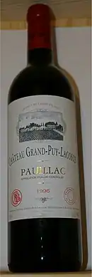 Bouteille de château Grand-Puy-Lacoste millésime 1996.