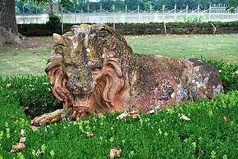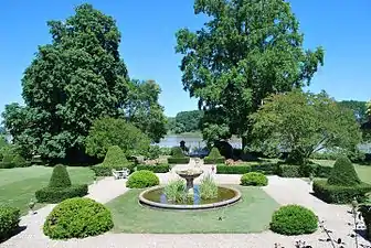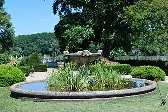 Devant la façade Est du château, face à la Garonne, se trouve un jardin à la française avec bassin comportant une vasque en marbre à têtes de lions et une fontaine.