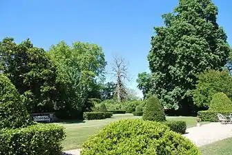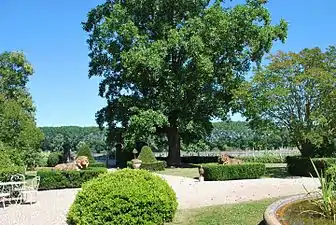 Au sud-est du château, un potager-verger a été planté dans des carrés de buis. Au nord-ouest, une série d'espaces clos à thème et de bassins, invitent à une promenade littéraire.