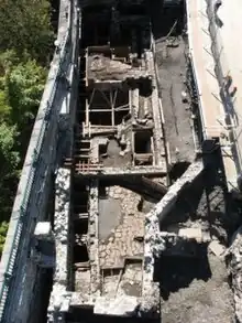Les vestiges de la première terrasse Durham, reposant sur les murs dérasés du château Saint-Louis incendié quatre ans plus tôt, sont peu nombreux, à l'exception d'une petite portion de son mur de soutènement au sud du château. Deux murs de maçonnerie érigés dans l'ancienne cour sud du château témoignent de l'allongement de cette terrasse en 1854.