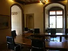 - Premier étage : salle du Conseil d'État, bureaux du chancelier et de la vice-chancelière ;