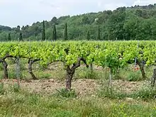 | Cépages | Cépages rouges grenache (45 %), syrah (25 %), mourvèdre (8 %), carignan (9 %) et cinsault (3 %) Cépages blancs roussane (5 %) et clairette (5 %). |
