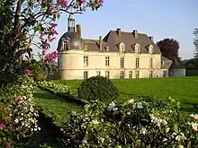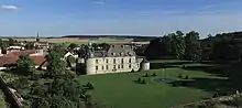 Du corps de logis principal, partent deux ailes dont l’une abrite une galerie d’arcades surmontée d’une galerie intérieure. Les tours d’angle portent une toiture en dôme. La cour, de briques et de pierres, contraste avec l’allure défensive des façades extérieures. Les fossés sont maçonnés de hauts murs. Au-delà, des terrasses à la française étagent le parc.