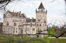 Lorsque la propriété fut vendue en 1837 au comte Aloys von Arco-Stepperg (1808-1891), arrière-petit-fils de l'impératrice Marie-Thérèse, il fit redessiner et décorer le château dans un style néo- gothique et romantique entre 1838 et 1848, sur le modèle des châteaux Tudor anglais. Jusqu'alors, le château ne se composait que d'un simple bâtiment d'habitation de quatre étages et d'un bâtiment de deux étages relié à une chapelle.