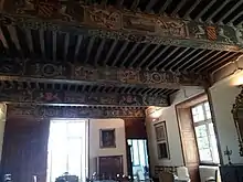 Dans le plus vaste de ces salons, les poutres du plafond sont peintes de divinités antiques et de paysages, parmi lesquels une représentation du château lui-même, tel qu’il était à l’époque. La cheminée, en pierre incrustée de marbre, est ornée de sirènes, de bacchantes, de monstres marins et d’une renommée ailée soufflant dans sa trompe au sommet. Dans le trumeau, une représentation de Suzanne et les Vieillards, attribuée à Le Brun, s’est presque effacée avec le temps.