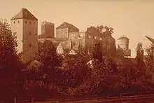 - (nl) Cet article est partiellement ou en totalité issu de l’article de Wikipédia en néerlandais intitulé « Kasteel Cheb » (voir la liste des auteurs).