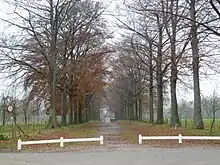 Au château se trouve un portail avec parvis, tous deux datés de 1649 et reconstruits après un incendie de cette année-là. Le bâtiment de la porte a un toit en casque avec une flèche noueuse et un cadre de porte en pierre bleue du côté du terrain. Ces bâtiments ont été restaurés en 1883-1885 avec la partie nord qui a été reconstruite.