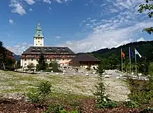 Schloss Elmau est un hôtel de luxe situé au pied des montagnes du Wetterstein dans une réserve naturelle, appartenant à la municipalité de Krün, entre Garmisch-Partenkirchen et Mittenwald en Bavière, Allemagne.