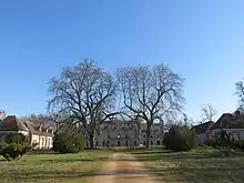 La ferme du château, déplacée et construite à neuf sous les Poultier, est achevée et augmentée par Mme Coüin de Grandchamp à qui revient aussi la décision de faire construire deux pavillons d’entrée à la suite du saut-de-loup. Quant à son mari, il fait creuser un canal profond pour y conduire les eaux de la mare Giron qui a tendance à déborder et à rendre le terrain marécageux. Il achète 150 ha de bois face au château et juste avant sa mort, fait édifier à droite du château un corps de bâtiment faisant pendant à celui de gauche pour y loger son fils Édouard et son épouse. C’est son fils qui fait installer la grille en fer forgé de l’entrée et les chaînes le long du saut-de-loup qui sépare la cour d’honneur de l’avant-cour[4].