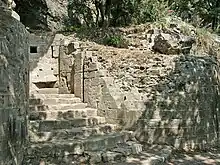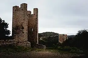 On trouve également des tours de flanquement quadrangulaires ouvertes à la gorge, édifiée au XIIIe – XIVe siècle, qui faisait partie la première enceinte[4].