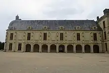 Seul l'accès des écuries tourné vers la basse-cour est mis en valeur par son encadrement de pilastres[37].