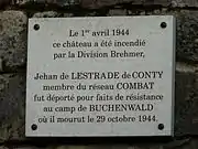 Le , les Allemands de la division Brehmer sont venus arrêter le comte Jehan de Lestrade de Conty et son fils Louis, propriétaires du château et membres du réseau de résistance Organisation civile et militaire (OCM), associé au réseau Combat et ont pillé et incendié le château. Ils ont été déportés au camp de Buchenwald où Jehan de Lestrade de Conty est mort. Après la Libération, le château a été restauré au titre des dommages de guerre.
