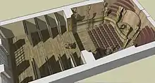 Vue d'artiste du vestibule du château de Bellevue dans son état en 1755.
