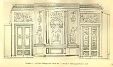 « Ce qu'on admire le plus dans le premier étage, c'est l'appartement de M. le Dauphin, & son cabinet meublé en Pékin, avec des dessus de porte de MM. Vernet & de Boulogne, & celui de Madame la Dauphine, meublé de même, & orné de dessus de porte de M. Pierre. » (Piganiol, 1760).
