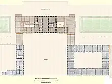 Au second-étage, une lanterne ingénieusement imaginée au milieu du bâtiment, a donné lieu à l'Architecte de pratiquer un grand nombre de petits appartemens occupés par les Seigneurs de la suite du Roi.