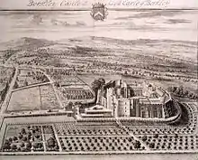Le château est entouré de jardins en terrasses élisabéthains, dont le boulingrin d'Élisabeth Ire, et un pin qui a la réputation d'avoir poussé à partir d'un greffon cueilli sur un arbre lors de la bataille de Culloden en 1746.