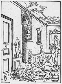 Les blessés souffraient de la typhoïde, la variole et d'autres maladies. Les infirmières et les médecins étaient submergés. Certaines maladies infectieuses répandues dans les villages voisins. Également les médicaments ne suffisaient pas. Parce que le personnel ne voulait entrer dans l'infirmerie des ouvertures ont été pratiquées dans certaines portes pour faire passer la nourriture. Ces ouvertures existent encore de nos jours.