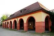 Construit en 1794 par Franz Anton Bagnato, le bâtiment à arcades est probablement le dernier bâtiment des chevaliers teutoniques à Beuggen. Le mur extérieur donne sur les douves. Du côté de la Cour, il est percé de sept arcades en plein cintre. Le bâtiment servit de remise pour voitures et chariots. Aujourd'hui, la salle est utilisée pour des expositions, du théâtre, du cinéma, ou des concerts.