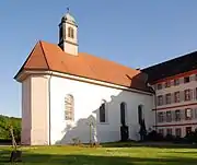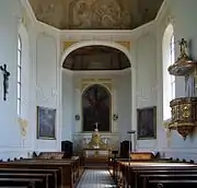 Les peintures du plafond de la nef sont attribuées au peintre Franz Ludwig Herrmann de Constance et a été construit entre 1752 et 1757. La peinture du plafond est placée comme un tableau sur la voute. Au centre de l'image, Élisabeth de Thuringe est représentée sur un piédestal. Dans le chœur, une fresque du plafond montre le couronnement et l'Ascension de la Vierge Marie. La représentation du thème religieux correspond aux saints Elizabeth, Sébastien et Roch, auxquels l'église était dédiée à l'origine.