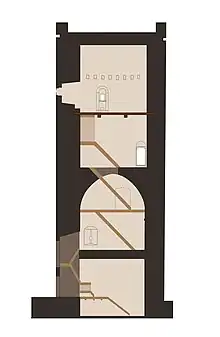L'entrée dans le château était autorisée via un pont-levis situé entre la tour des impôts et la tour principale.