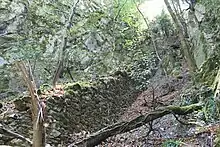 Au point culminant de la table rocheuse subsistent les restes d'un donjon[3], carré de 8,40 mètres de côté hors œuvre ; les murs sont arasés au niveau du sol[14].