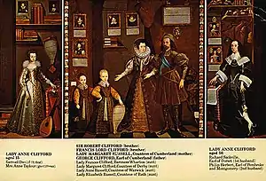 À la mort de George Clifford en 1605, son épouse Margaret devint comtesse douairière et entreprit des réparations au château de Brougham qui devint sa résidence préférée. Margaret s'affronta avec son beau-frère, Francis Clifford, 4e comte de Cumberland, qui revendiquait les biens de la famille, mais elle réussit à conserver le château de Brougham. Sa fille, Lady Anne Clifford, poursuivit la restauration du château et d'autres propriétés appartenant aux Clifford. Seule survivante parmi les trois enfants de Margaret, les deux autres étant morts enfants, Anne hérita des domaines Clifford après la mort de sa mère en 1616. L'héritage ne fut pas sans incident. Le comte de Cumberland fit à nouveau valoir son droit à la succession Clifford, mais le Conseil privé statua en faveur d'Anne. La solution n'était que temporaire et, en , le roi décida que le comte de Cumberland était l'héritier légitime, et les domaines Clifford furent transmis à Francis Clifford. Plus tard la même année, Jacques 1er se rendit en Écosse et, lors de son retour, il séjourna aux châteaux de Carlisle, Brougham, et Appleby, où de coûteux banquets furent donnés en son honneur. Les festivités sont estimées à environ 1 200 £. Après cela, Brougham fut presque oublié et négligé par son propriétaire.