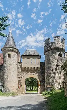 1957 : Le château, avec le mur d'enceinte et l'ancien temple protestant situé à l'entrée, a été classé Monument historique le [1].