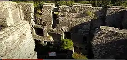 Le rez-de-chaussée est occupé par des caves dont celle de l'ESP 1 a conservé partie de la voute. On remarque dans la voute côté Sud, une partie obturée qui pourrait être un premier accès entre ce premier niveau et le niveau supérieur avant la construction de l'escalier. C'est aux niveaux supérieurs que se situaient les pièces de réception et de la vie quotidienne. Celle du niveau 1 de ESP1 avec ses grandes ouvertures sur la vallée, des fenêtres à meneaux, était dallée de tomettes de terre cuite dont on a retrouvé des fragments et les murs recouverts de boiseries aujourd'hui disparues. Celle de ESP2, probablement partagée par une cloison, présente une vaste cheminée au Sud-Ouest et, à sa hauteur, une sortie surélevée vers l'extérieur. On remarque d'autres cheminées aux niveaux supérieurs. Les trous de boulins ou d'empochement observés permettent de distinguer les niveaux de chacun des espaces, 3 pour ESP 2 et 4 pour ESP 1.