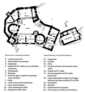 - « Château et sa chapelle », notice no PA00117740, sur la plateforme ouverte du patrimoine, base Mérimée, ministère français de la Culture.