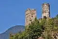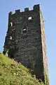 Le château de Chantemerle se présente sous la forme d'une enceinte polygonale irrégulière que commande une tour maîtresse cylindrique à archères du XIIIe siècle, et d'une tour carrée du XIVe siècle[11] située un peu en contrebas.