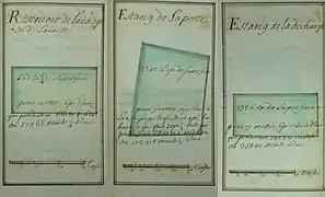 - Bibliothèque Méjanes d'Aix-en-Provence, références : N° CGM : 119 Autre cote : 451 Autre cote : R.328 Titre : [Traité des eaux de Chaville] Date : 1697 Langue : français Support : Papier Importance matérielle : Non paginé Autres caractéristiques matérielles : Plans coloriés, figures Dimensions : 153 × 90 mm Reliure : Reliure veau fauve, tranche dorée.