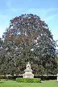 Derrière l’ensemble statuaire, est planté un hêtre pourpre, rose au printemps, rouge sang durant l’été et grenat à l’automne. Il a survécu à la tempête de l’hiver 1999 alors que celle-ci a causé de lourds dégâts dans le parc, détruisant la quasi-totalité des arbres d’ornement : conifères exotiques, cèdres et fusains de Virginie. Quatre-vingt-trois arbres ont été déracinés, ne subsistent, outre le hêtre pourpre, que des arbres originaires de la région : chênes, hêtres, tilleuls et marronniers.