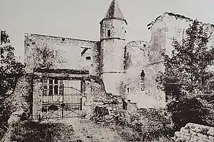 La tour ouest du château s'effondre vers 1880[8].