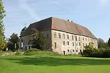 Ce château saxon, d'architecture Renaissance tardive, a été construit en plusieurs phases à la place d'un ancien Wasserburg médiéval, à partir de la seconde moitié du XVe siècle et terminé pour sa plus grande partie en 1624 à l'époque de son seigneur, Hieronymus von Dieskau le Jeune (1565-1625). Il a été remanié en 1878-1900 avec des éléments néorenaissance.
