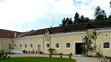 Il y avait autrefois un manoir construit en 1455 pour les terres du domaine. Il appartient à la fin du XIXe siècle à la princesse Marie-Thérèse de Tour et Taxis qui le vend en 1890 à Cornelius Reischl, grand-père maternel de Frida Uhl (deuxième épouse d'August Strindberg). Celui-ci fait construire un château historiciste néobaroque qui mélange le style médiéval et le style Renaissance. La tour pseudo-médiévale, à l'est, est octogonale et crénelée. Une terrasse soutenue par une loggia à la florentine parcourt la façade entre deux avant-corps.