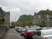 Vue de Dumbarton Castle depuis la rive opposée de la Clyde. | ||
