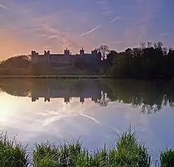 Côté ouest du château, on peut encore voir un des lacs. Au XVIe siècle, ils étaient au nombre de deux, beaucoup plus grands qu'aujourd'hui et étaient complétés par un quai situé juste à côté. Cette utilisation de l'eau afin de refléter l'image du château est un procédé utilisé dans plusieurs autres châteaux à cette époque, comme aux châteaux de Bredwardine (en) et de Ravensworth (en). À l'origine, depuis la Grande Salle qui se trouvait dans la cour intérieure, on pouvait voir les jardins de la cour inférieure qui, à cette époque, étaient entourés d'un lac et du Grand Parc situé plus loin. Aujourd'hui, la zone entourant le château reste un paysage dessiné qui n'est pas laissé à l'abandon. Bien que le Grand Parc soit maintenant recouvert de champs, le panorama donne toujours une idée sur la façon dont les derniers propriétaires du Moyen Âge devaient percevoir le château et le paysage.