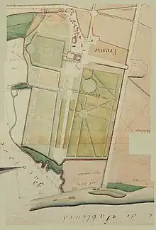 Plan gravé du jardin du château de Fresnes-sur-Marne à la fin du XVIIIe siècle, publié par Le Rouge (jardins anglo-chinois)