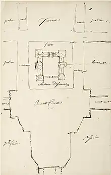 Essai de restitution du plan du château de Fresnes (Seine-et-Marne), avant les travaux de Mansart.
