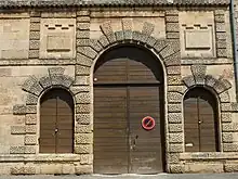 Voûtes du château contre la façade de l'aile centrale du château côté jardin.