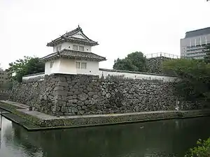 Le pont sur les douves et les yagura qui existent aujourd'hui sont une reconstruction moderne. Les seules parties de la construction originale comprennent une partie du mur et le fossé lui-même.