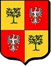 Les armes des Genas ont souvent été modifiées[15]. Avant 1429, les Genas avaient d'argent au genet de sinople, boutonné d'or. L'union de Louis, l'un d'eux, avec une fille de Charles Spifame, d'Avignon, mais originaires de Lucques, leur fit adopter l'aigle. François de Genas, président de la chambre des comptes du Dauphiné, en 1476, seigneur d'Aiguilles, écartela ses armes : 1° et 4° aux Genas et 2° et 3° aux Spifame, sa mère. Ce sont ces armes qui figurent sur le fronton du château de Genas.